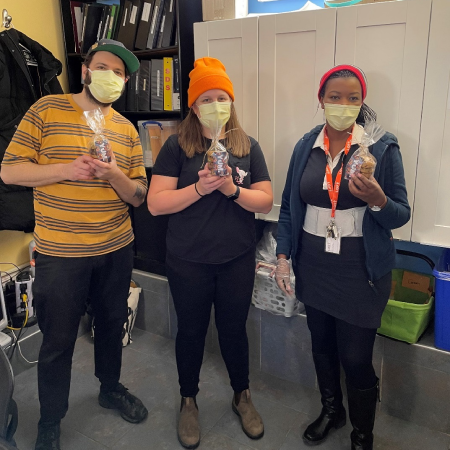 LOFT staff at McEwan enjoying their cookies, a thank you gift from a LOFT board member for their tireless efforts
